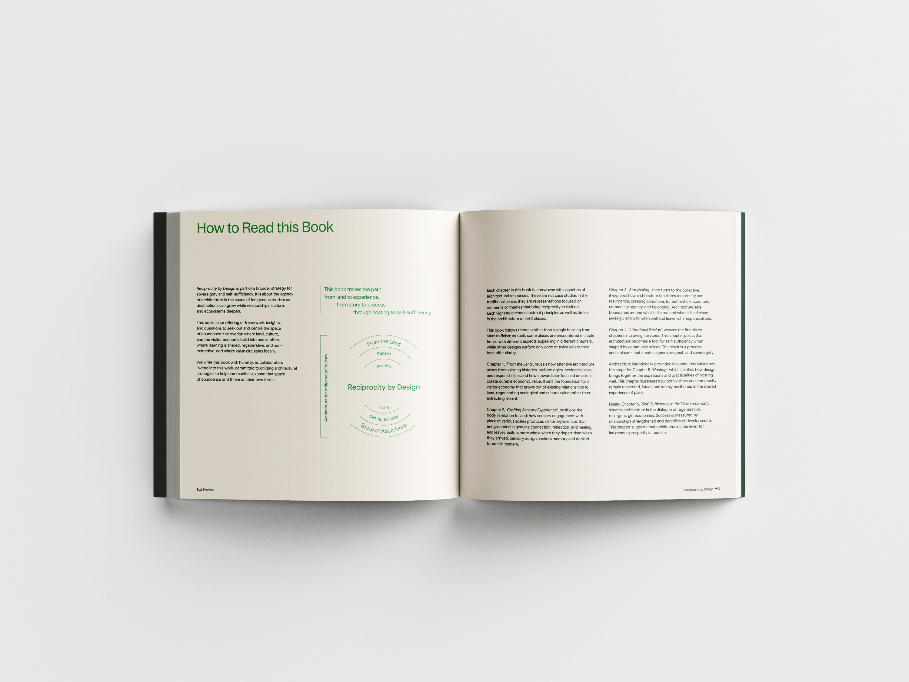 Interwoven with vignettes of architectural interventions focused on themes that bring reciprocity to fruition, this book is our offering of framework, insights, and questions to seek out and unlock the space of abundance: the overlap where land, culture, and the visitor economy build into one another, where learning is shared, regenerative, and non-extractive, and where value circulates locally. We write this book with humility, as collaborators invited into this work, committed to utilizing architectural strategies to help communities expand that space of abundance and thrive on their own terms.