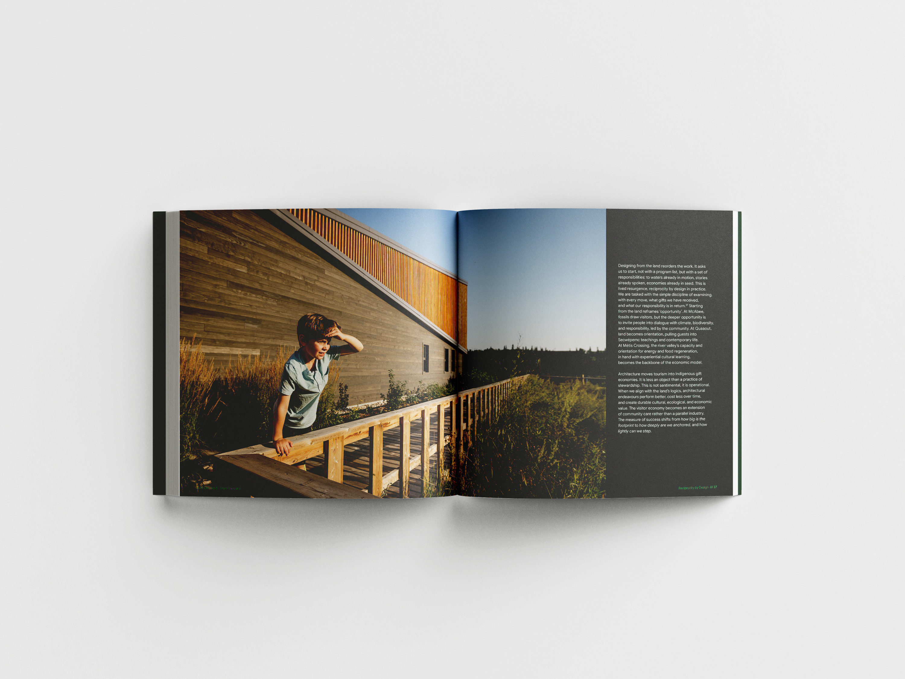 Reciprocity is a relationship, an exchange, a promise fulfilled. Indigenous knowledge systems centre this relationality where land, water, plants, animals, ancestors, and future generations are kin. Reciprocity then is governance in motion, a way to keep these relationships in balance. Reciprocity by Design is part of a broader strategy for sovereignty and self-sufficiency. It is about the agency of architecture in the space of Indigenous tourism so destinations can thrive while relationships, culture, and ecosystems deepen.