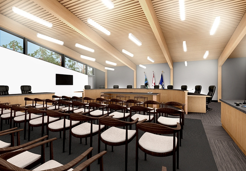 Warmth, integrity, collaboration. These are the values that inform the new Bonnyville Town Hall. The building's program includes council chambers, break-out areas, emergency operations centre, and various meeting rooms.