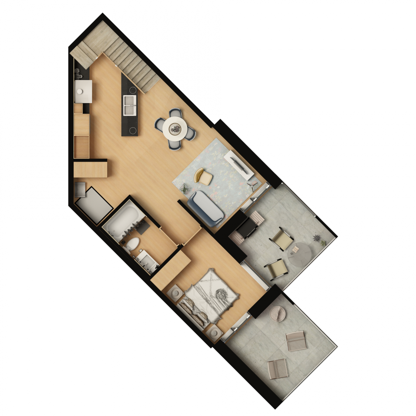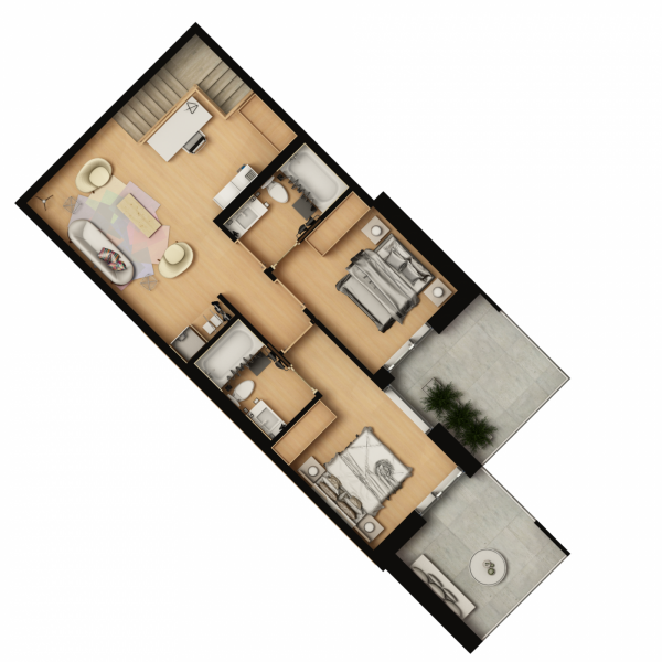 Ground-oriented duplex units on the main and second floors provide direct outdoor access, an especially sought-after feature for families and individuals seeking privacy and a strong connection to outdoor space.