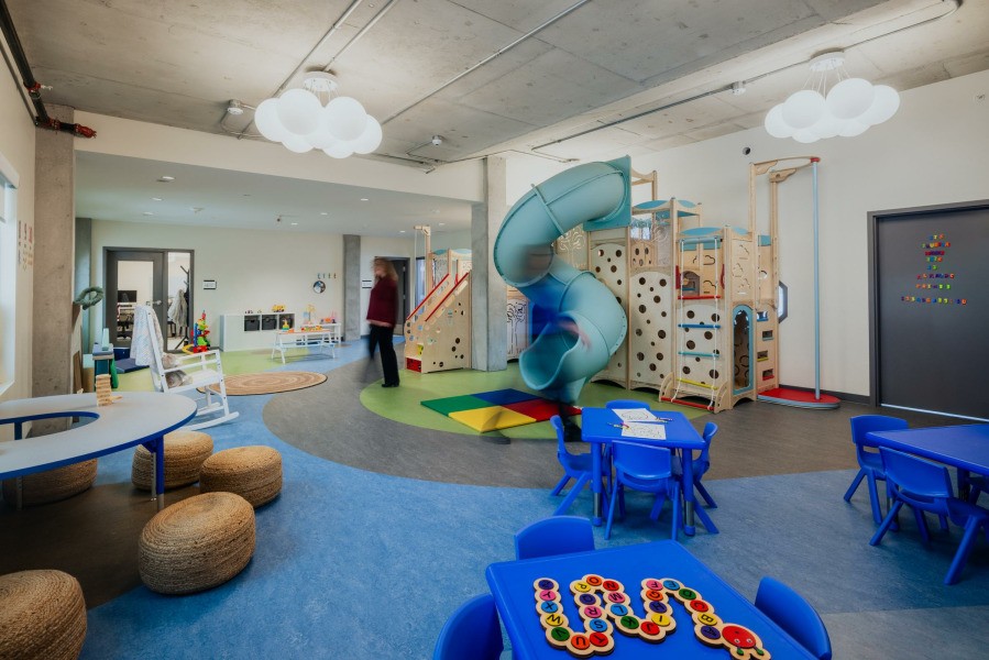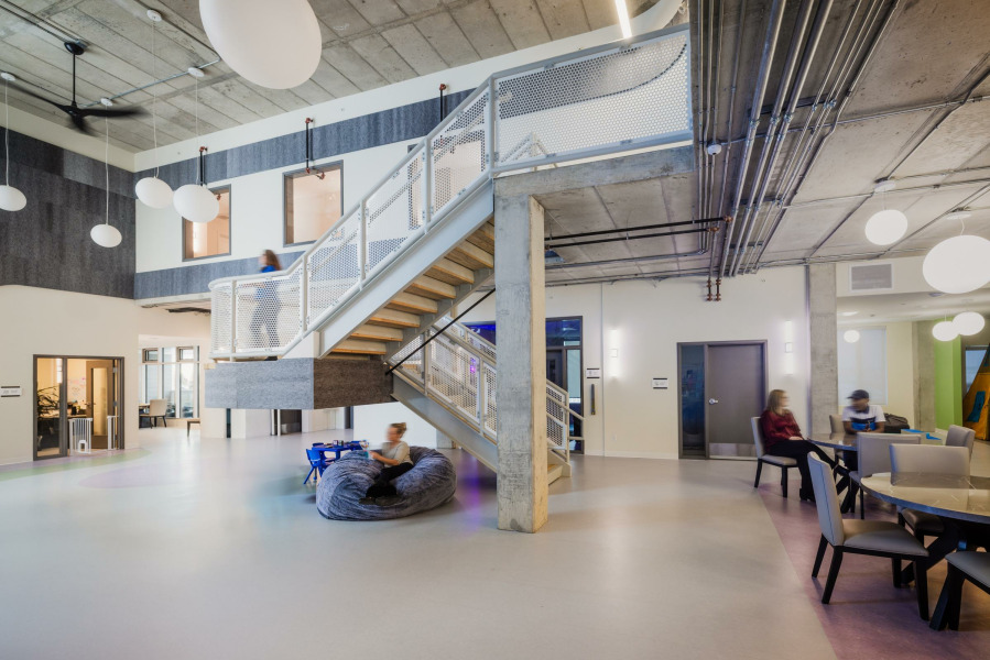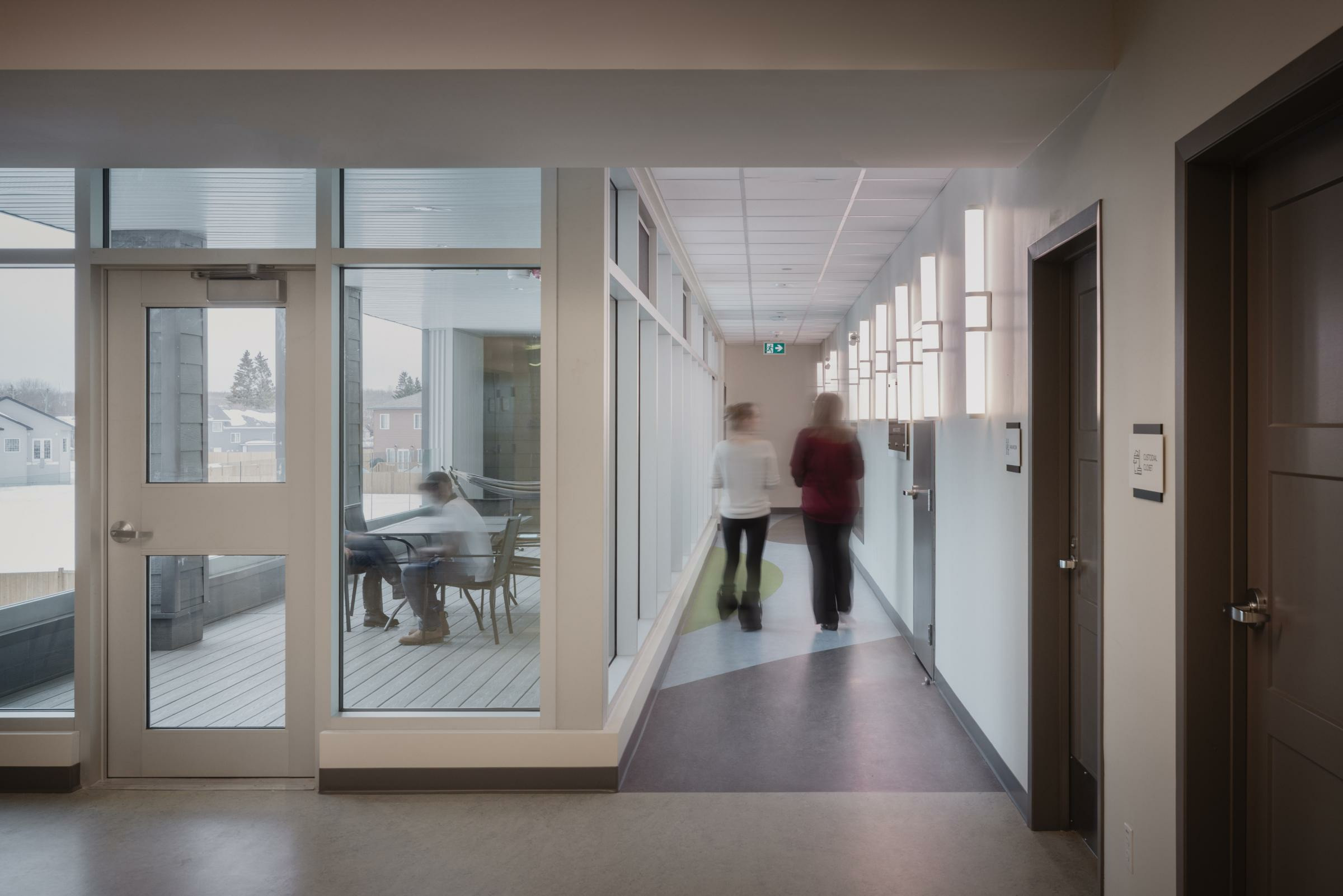 The Stepping Stones Crisis Centre encapsulates the intrinsic warmth and comfort of home, while also offering enhanced privacy, security, and confidentiality to all of its residents, visitors, and staff. The space is sustainable for both the environment and the human spirit. Green-building features include cutting-edge technologies and passive strategies to reduce operational costs and environmental impacts while creating a healing space. Residents and visitors enjoy access to nature, children's play areas, spaces for spiritual healing and empowerment, sensory rooms and spaces designed for religious and cultural practices.