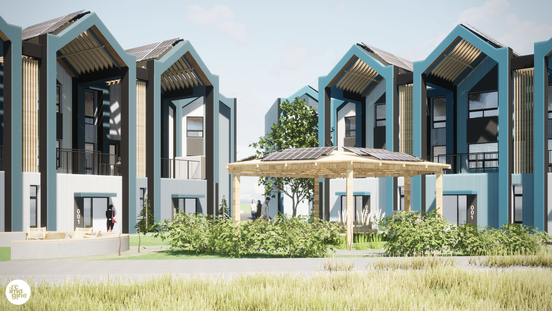 In our conceptualization of the housing spaces, we considered site infrastructure, building orientation for optimum passive energy performance, landscaping opportunities, and the integration of green spaces for encouraging community connectedness and activities. Our design process was informed by multiple principles deemed critical for project success: Mental Health, Sustainability, Accessibility, Community Pride, Connection, and Collaboration.