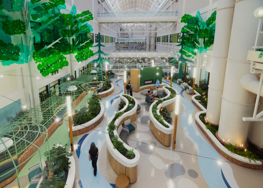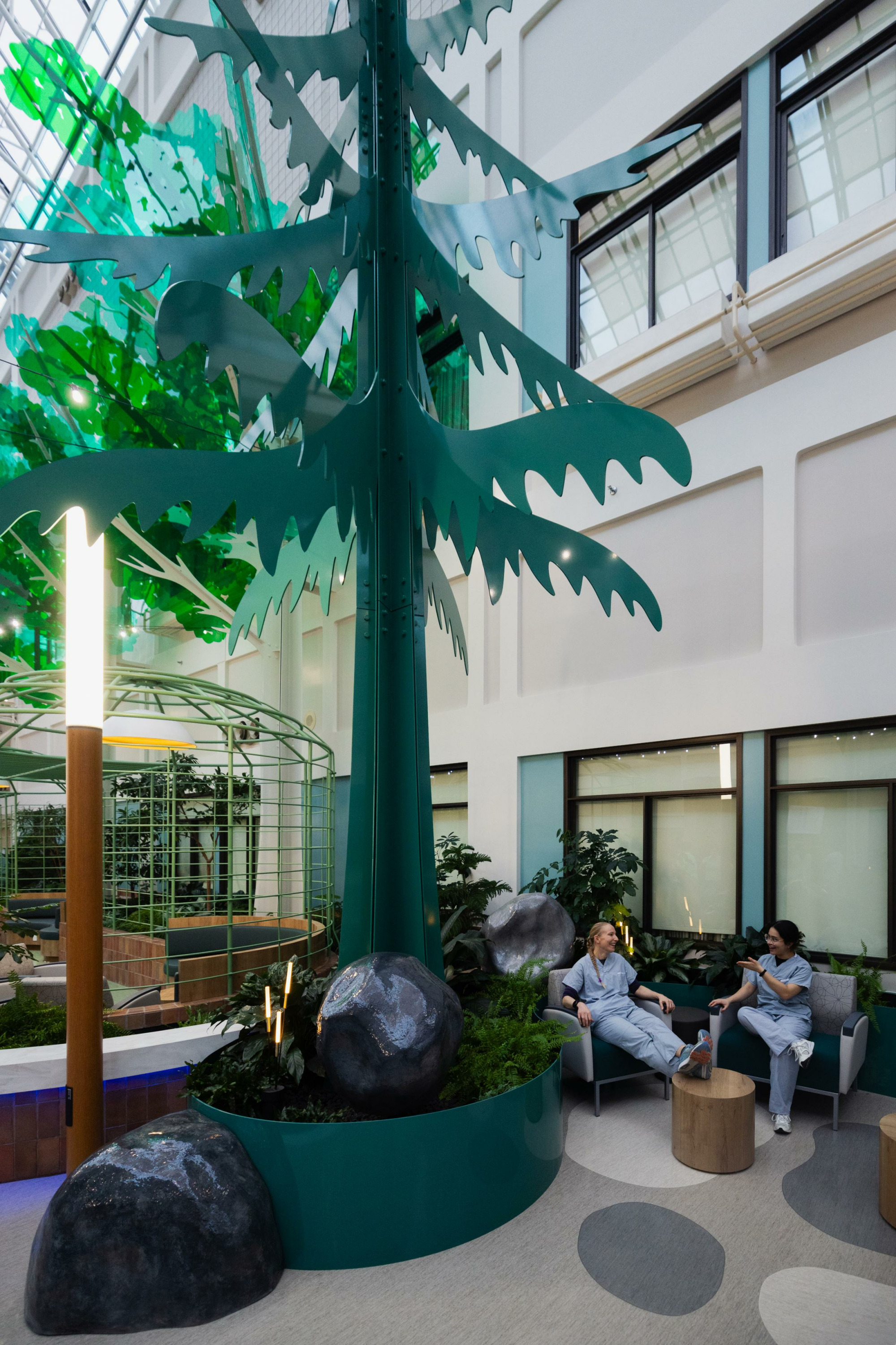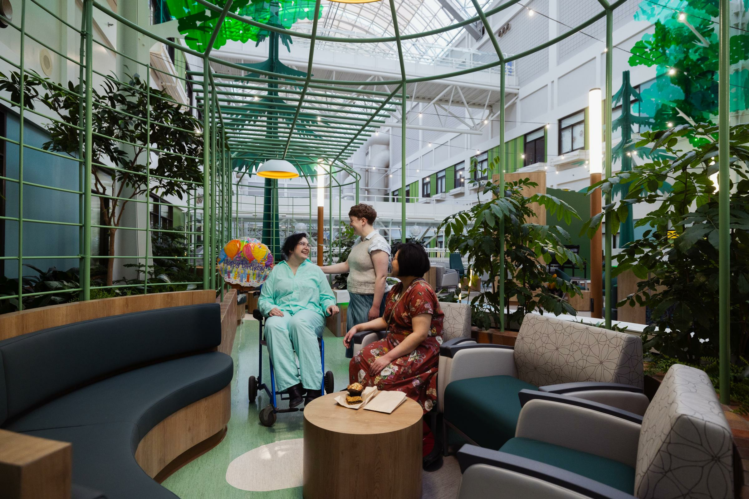 The Atrium itself is a public area within the hospital where patients, staff, families, and children use the space on a daily basis. The vision for the project was to improve the patient and family experience, increase utilization of the existing space, increase the number of cultural activities, improve patient mobility and clinical outcomes and reduce stress for surgical patients and families. The space also improves the wellbeing of staff and physicians by giving them a refuge from what can be a hectic hospital environment.
